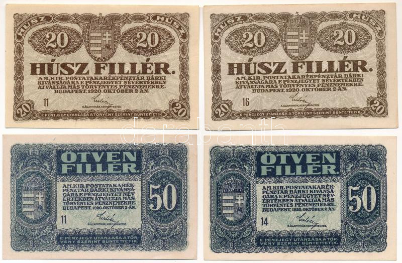 https://www.darabanth.com/en/435-Online-auction/435.0/Numismatics/Hungarian-Banknotes~1000007/1920-20f-2x-plus-50f-2x-TI--Adamo-K1-K2~II2813722