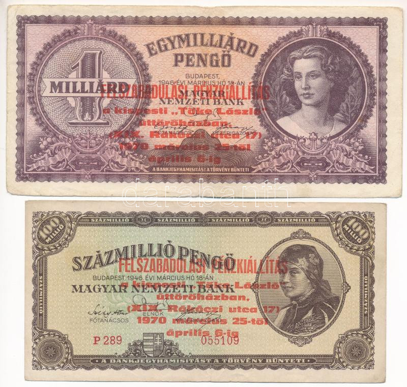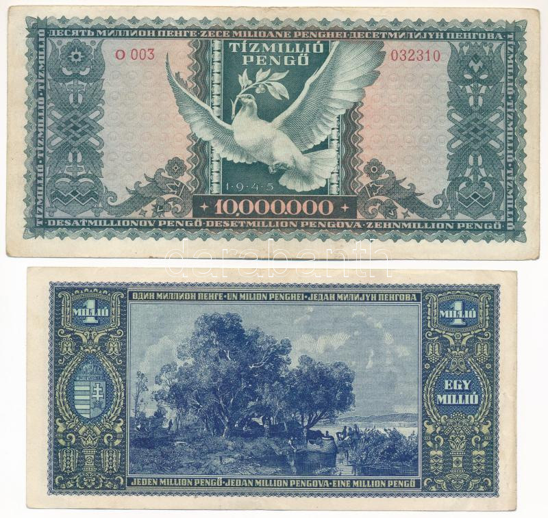 https://www.darabanth.com/en/435-Online-auction/435.0/Numismatics/Hungarian-Banknotes~1000007/1946-1000000P-plus-1945-10000000P-plus-1946-100000000P-plus-1946-1000000000P-mind-Felszabadula~II2782994