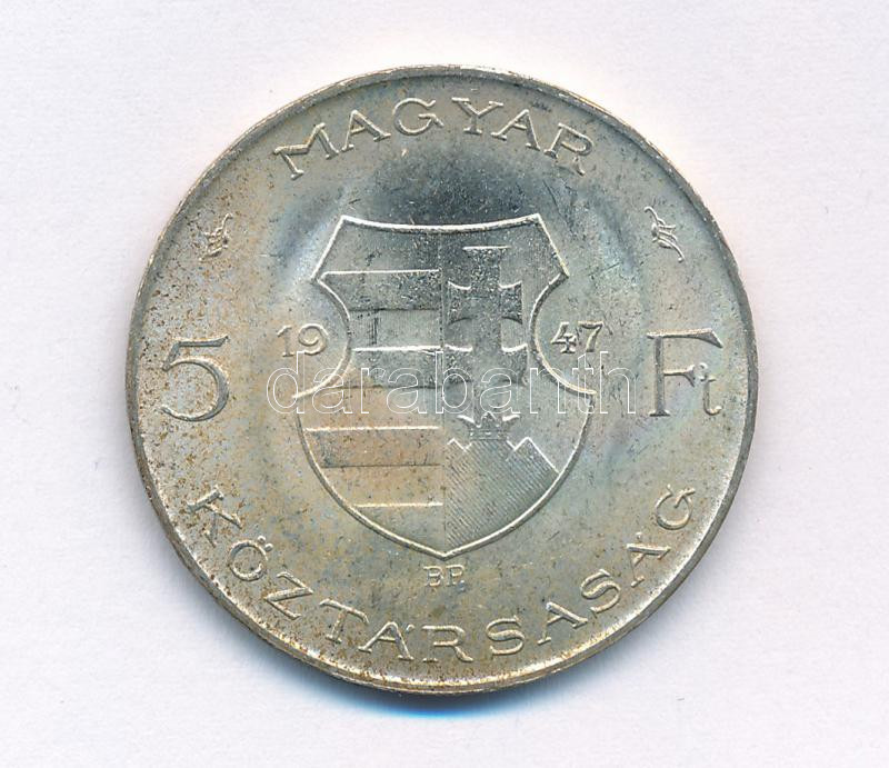 https://www.darabanth.com/en/435-Online-auction/435.0/Numismatics/Hungarian-coins-and-coins-with-Hungarian-mint-marks~1000008/1947-5Ft-Ag-Kossuth-T1-patina-Adamo-F81~II2789770
