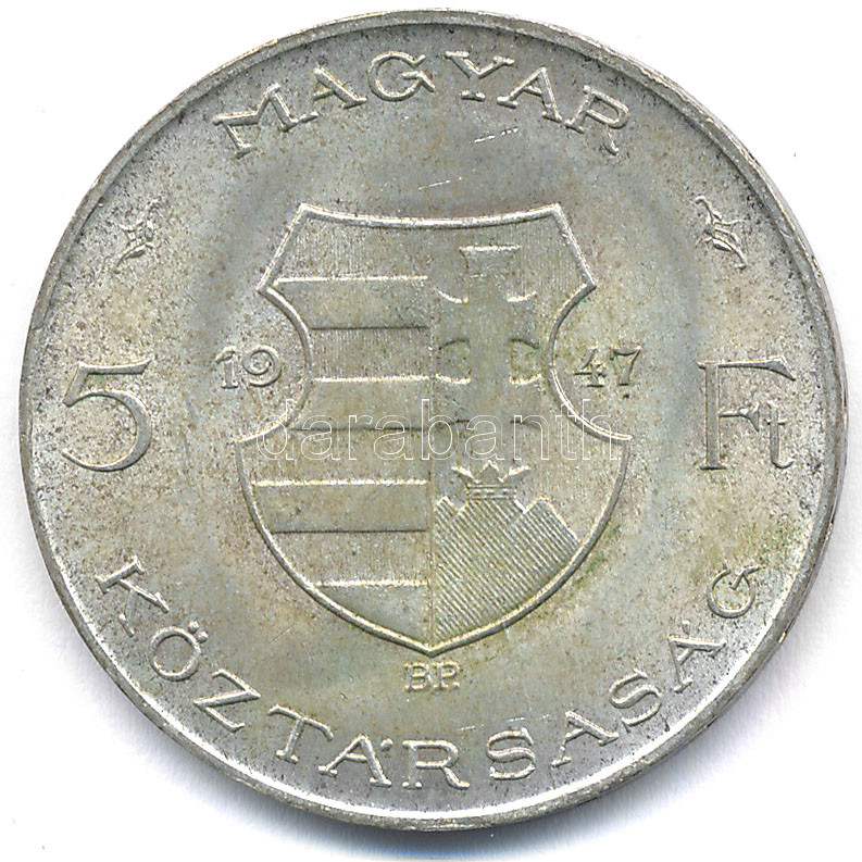 https://www.darabanth.com/en/435-Online-auction/435.0/Numismatics/Hungarian-coins-and-coins-with-Hungarian-mint-marks~1000008/1947-5Ft-Ag-Kossuth-T1-patina-Adamo-F81~II2813995