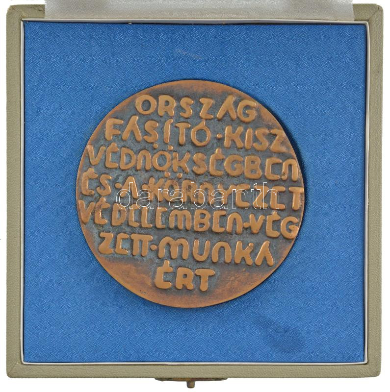 Description: DN "KISZ Környezetvédelem / Országfásító KISZ védnökségben és a környezetvédelemben végzett munkáért" kétoldalas bronz emlékérem tokban (77mm) T:1- kis patina