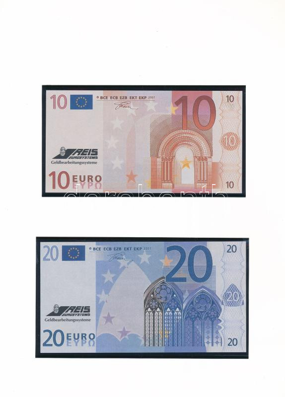 Description: Eurozóna tagállamai 2001. 5E + 10E + 20E "Görög Euro bevezetése" német nyelvű leírással T:I