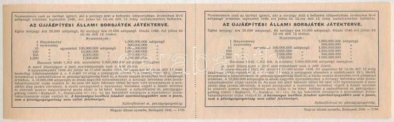 1946. "Újjáépítési Állami Sorsjáték" fél-sorsjegye 10.000AP értékben (2x), A és B sorsjegy "20357" T:III
