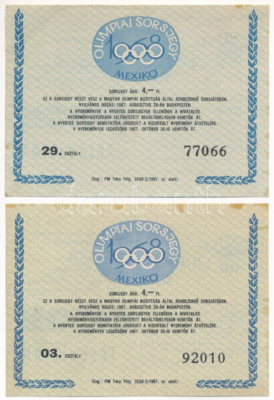 1967. "Olimpiai Sorsjegy Mexikó 1968" lyukasztás nélkül (2db) T:I-,II- fo.