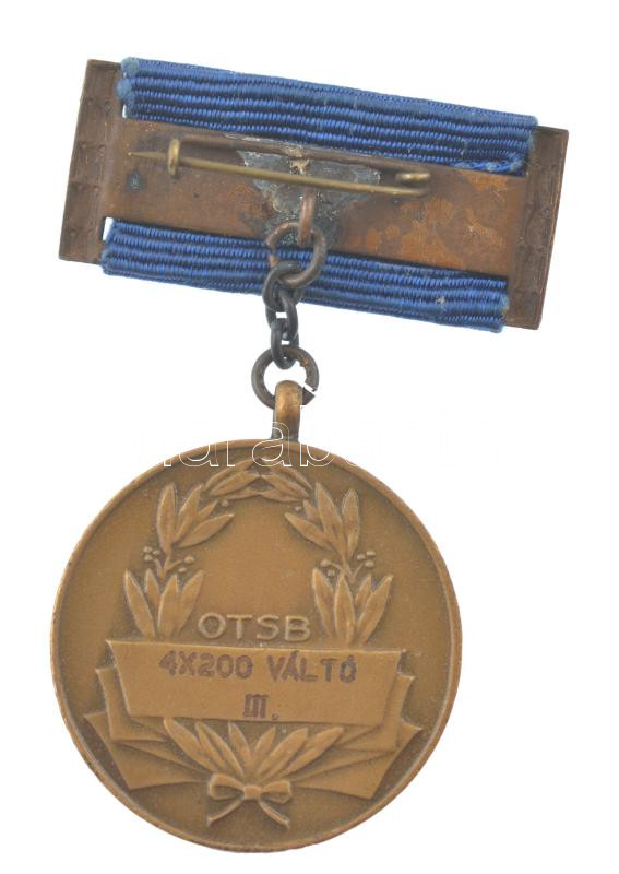 1955. "Magyar Népköztársaság Bajnokságai - 1955 / OTSB" kétoldalas, bronz díjjelvény, hátoldalán "4x200 váltó - III." gravírozással (~56mm) T:1-
