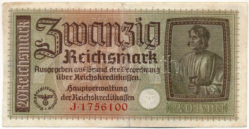 Description: Német Harmadik Birodalom 1940-1945. 20M "J 1756100" T:III kis szakadás, anyaghiány