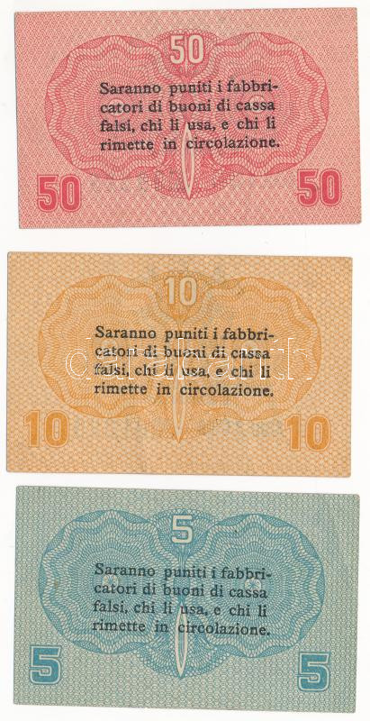 Italy / Venice / Austro-Hungarian occupation 1918. 5 Centesimi + 10 Centesimi + 50 Centesimi C:XF-F Krause P#M1, P#M2, P#M3
