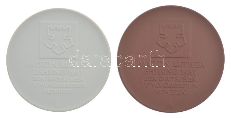 Description: Német Demokratikus Köztársaság 1983. "AZ NDK 1983-as Martin Luther kitüntetése" 2xklf meisseni porcelán plakett (62mm) T:1