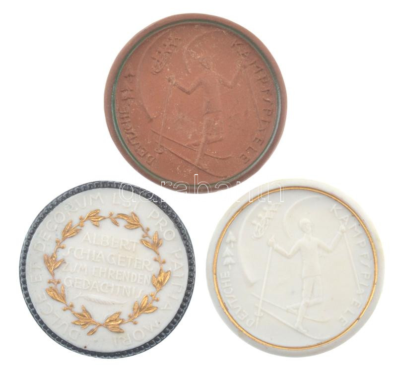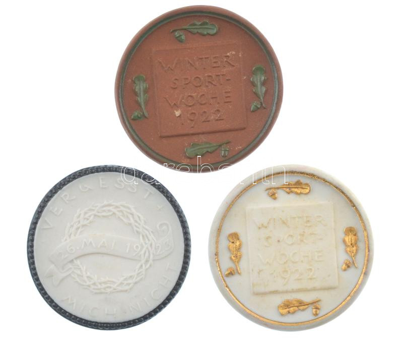 Németország 1922. "Télisport-hét" 2xklf porcelán érem (37mm) + 1923. "Albert Schlageter emlékére" porcelán érem (37mm) T:1- folt
