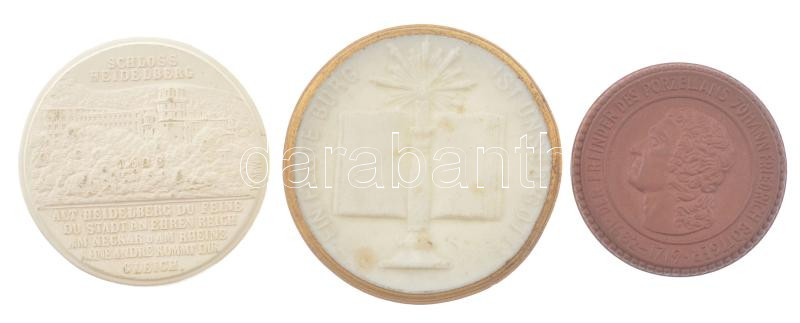 Németország 1925. "1925-ben a reformáció bevezetésére emlékezünk" porcelán emlékérem (46mm) + DN "Heidelbergi kastély 1689" porcelán érem (44mm) + "A porcelán feltalálója, Johann Friedrich Böttger" jelzett meisseni porcelán emlékérem (32mm) T:1- folt