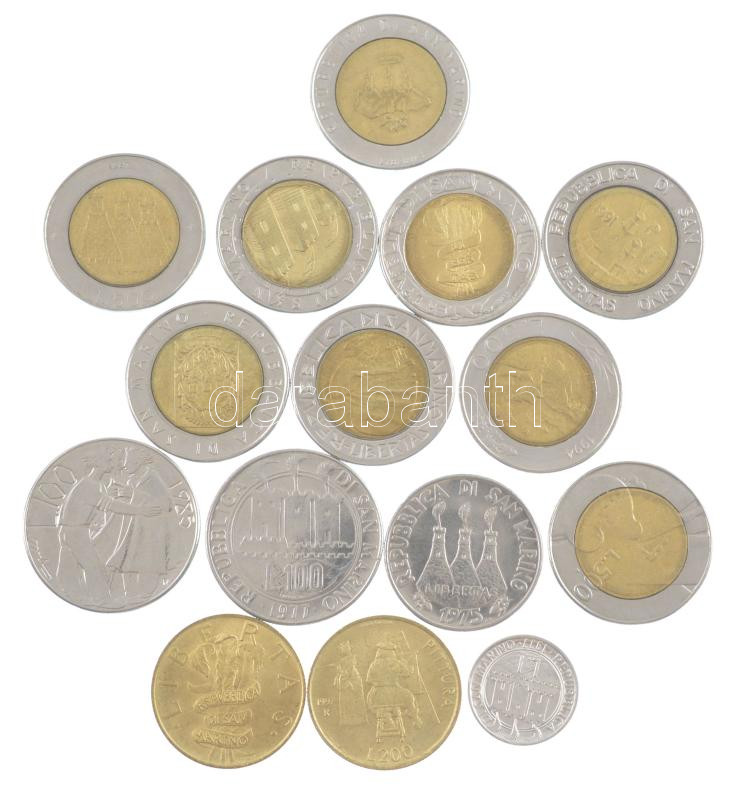 https://www.darabanth.com/en/435-Online-auction/435.0/Numismatics/Worldwide-silver-and-metal-coins~1500031/San-Marino-1975-1997-1L-500L-15xklf-forgalmi-emlekpenzek-T1-2-San-Marino-1975-1997-1-Lira-~II2813731