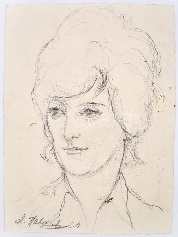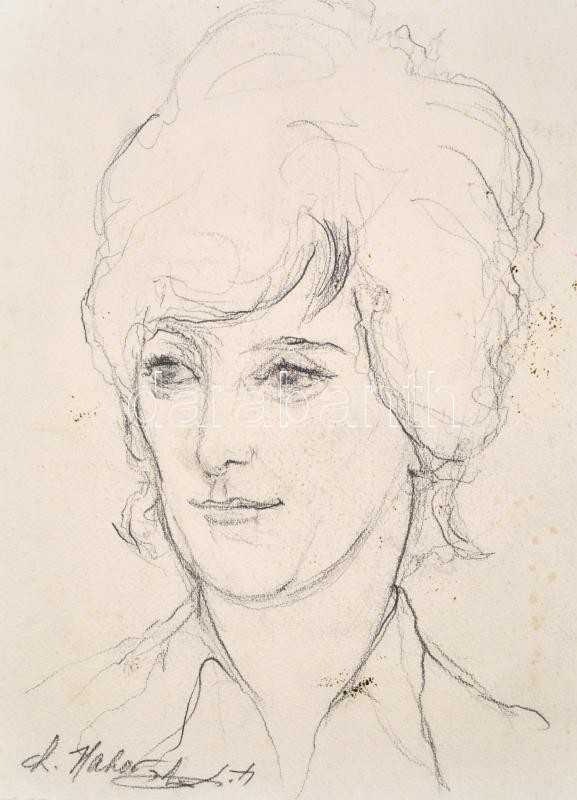 Chaim Nahor (1914-1993, izraeli festő és grafikus): Férfi és női portré, 2 db mű. Szén, papír, jelzett, kissé foltos. 38,5x28 cm / Chaim Nahor (1914-1993, painter from Israel): Portrait of a man and woman, 2 pcs. Coal, paper, signed, a bit spotty. 38,5x28 cm