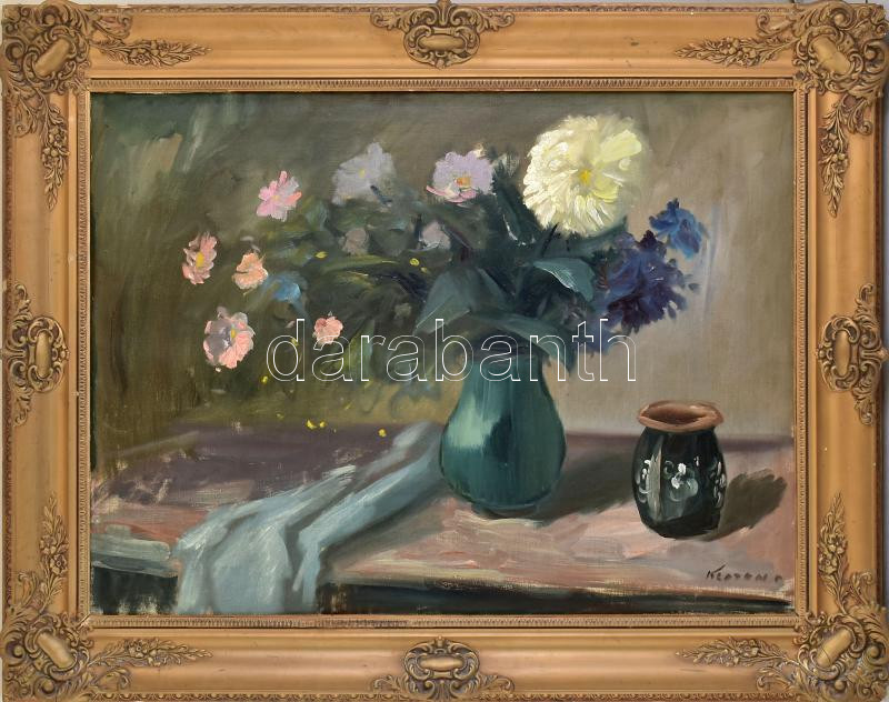https://www.darabanth.com/en/435-Online-auction/435.0/Paintings-and-graphics/Paintings-and-graphics~500001/Kloton-Peter-1927-1985-Csendelet-Olaj-vaszon-Jelzett-Javitott-Dekorativ-kisse-serul~II2814119