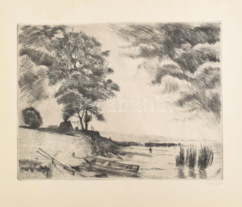 László Gyula (1910-1998): Balaton. Rézkarc, papír, jelzett, lap széle ...
