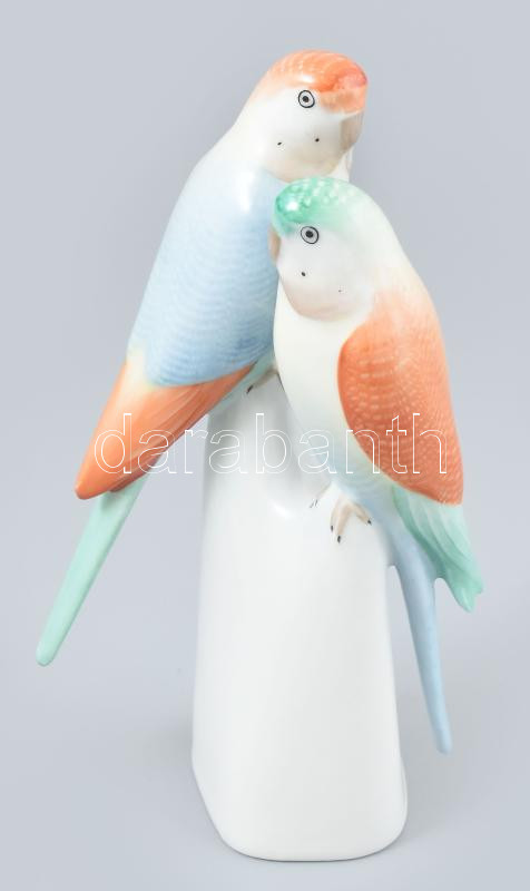 Hollóházi papagájok, kézzel festett porcelán, jelzett, kis kopásokkal, m: 18 cm