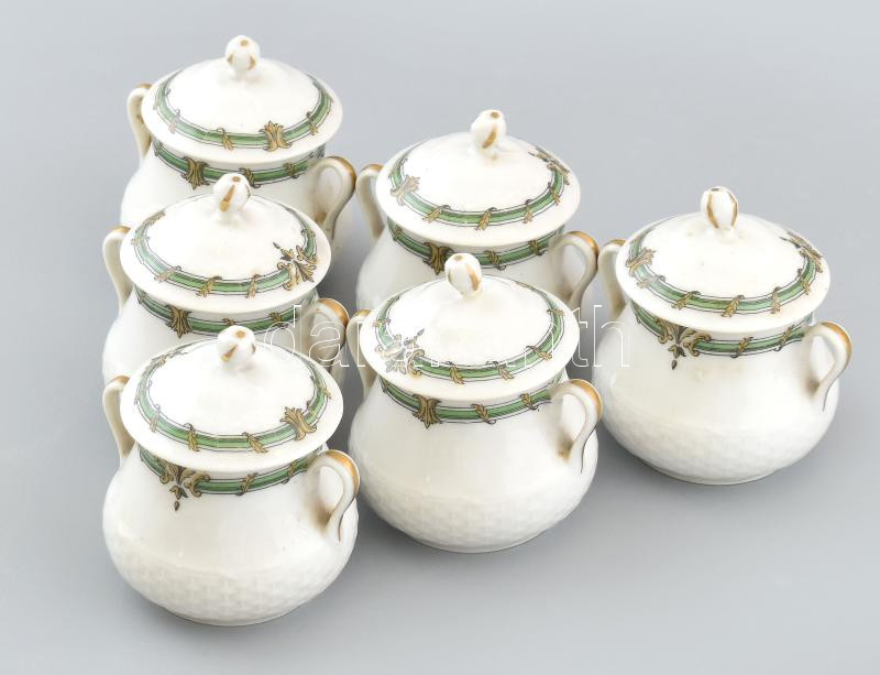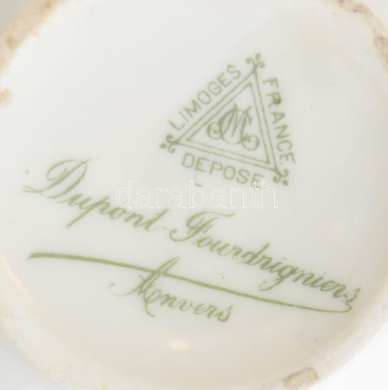 Limoges szósz tartó, 6 db, porcelán, jelzett, kopásokkal, m: 9 cm