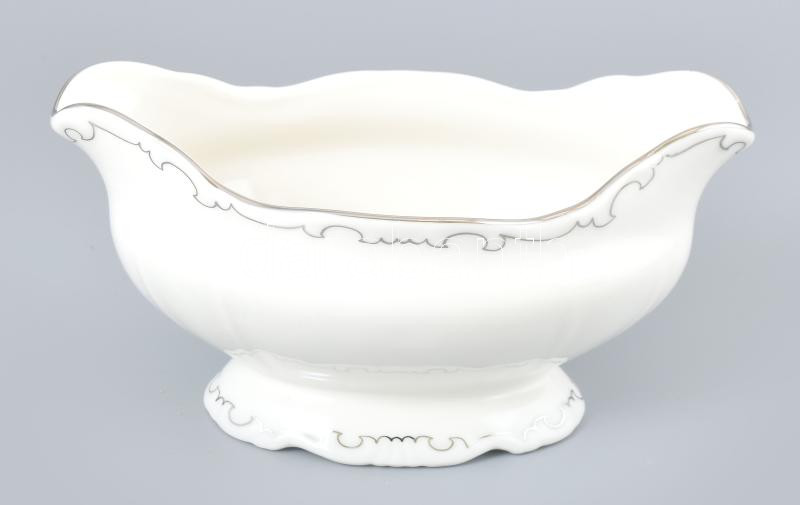 Zsolnay tollazott ezüst szegélyes szószos tál. Kézzel festett, jelzett...