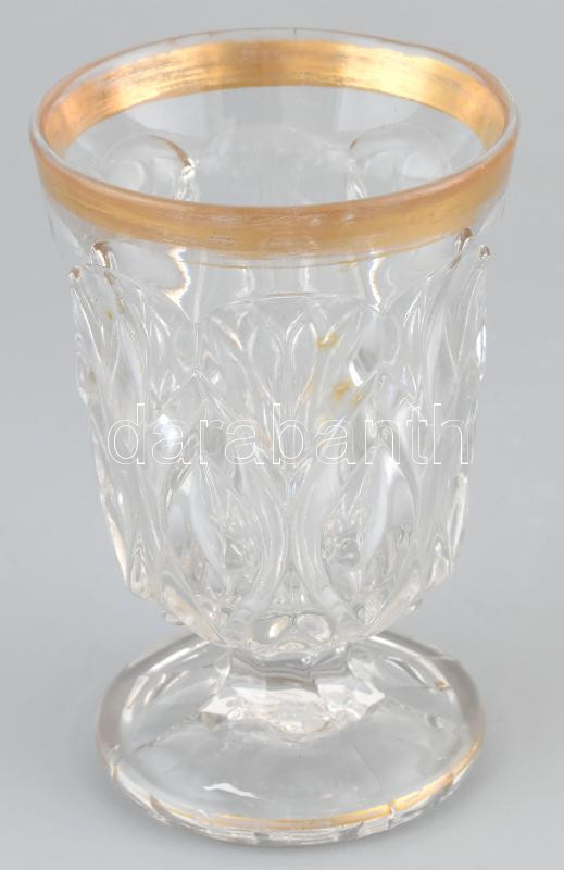 Kristály talpaspohár, aranyozott széllel, Franciaország, Saint Luis, Baccarat, Jelzés nélkül. Kopásokkal, m: 13 cm