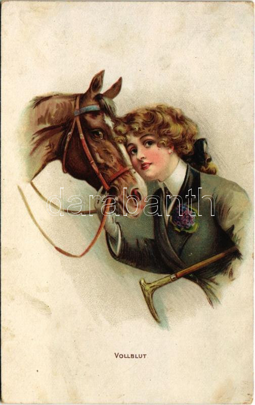Vollblut / Tellivér ló és hölgy / Horse and lady. A.R. & C.i.B. 424. litho
