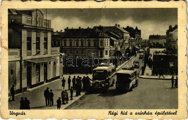 1942 Ungvár, Uzshorod, Uzhhorod, Uzhorod; Régi híd és színház, autóbus...
