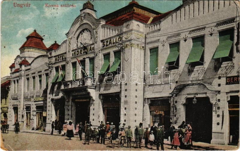 Ungvár, Uzshorod, Uzhorod; Korona szálló, Berkes és Horvát Mór üzlete....