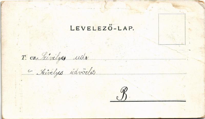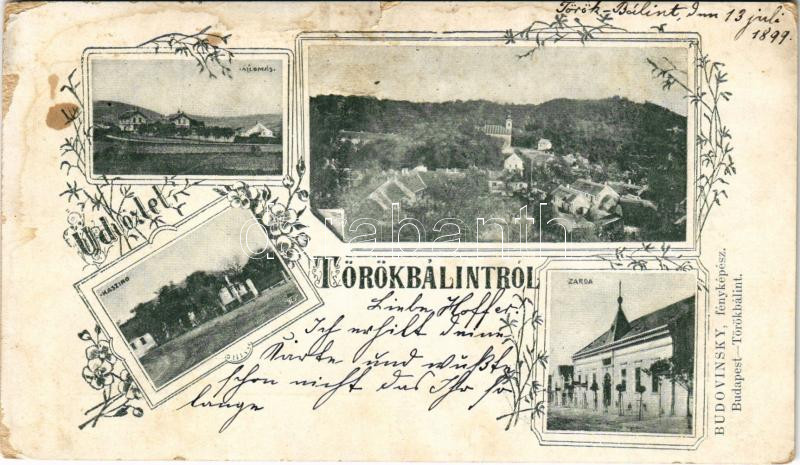 1899 (Vorläufer) Törökbálint, vasútállomás, gőzmozdony, vonat, látkép, kaszinó, zárda. Budovinsky fényképész. Budovinsky fényképész. Art Nouveau, floral (szakadás / tear)