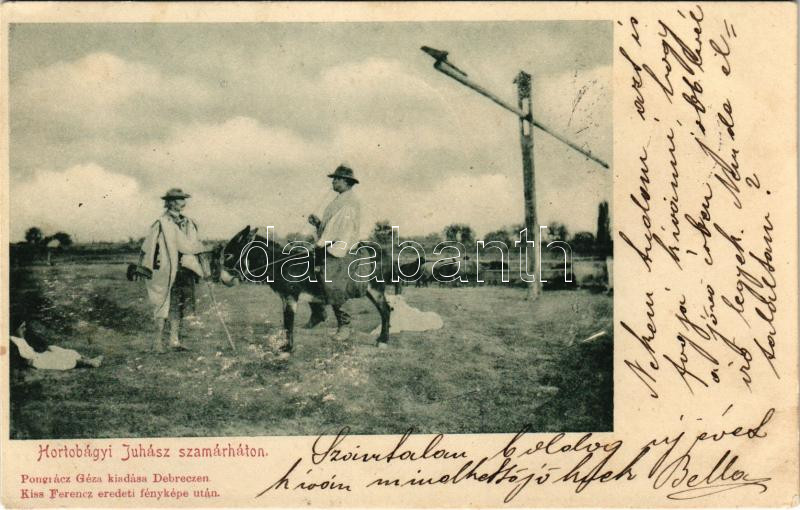 1901 Hortobágy, Juhász szamárháton. Pongrácz Géza kiadása Kiss Ferenc ...