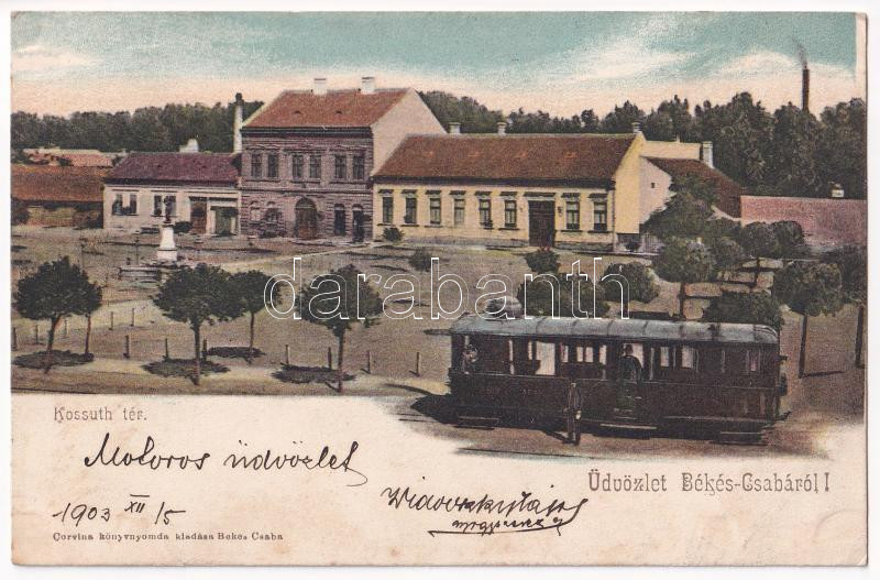 1903 Békéscsaba, Békés-Csaba; Kossuth tér, motor, városi vasút. Corvina könyvnyomda kiadása (fl)