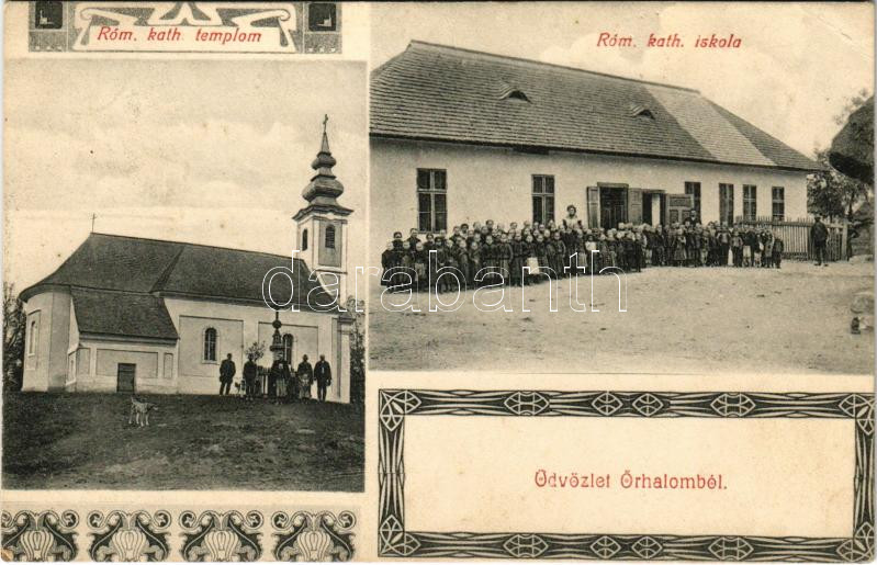 1912 Őrhalom, Római katolikus templom és iskola. Art Nouveau + "L...
