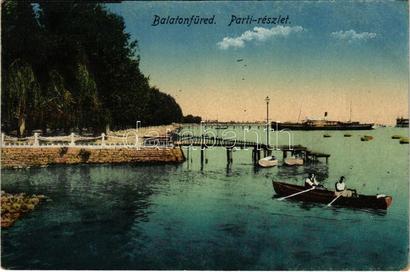 1920 Balatonfüred, Parti részlet, csónakázók (EK)