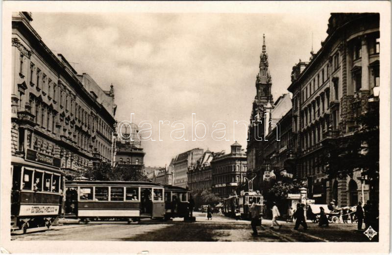 1929 Budapest VII. Erzsébet körút, villamosok Stollwerck, Esterházy pe...