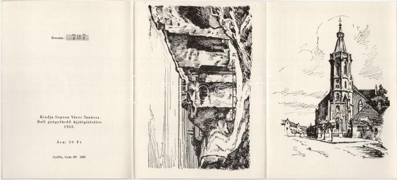 1958 Balf gyógyfürdő újjáépítéséért - leporello füzet 5 képeslappal