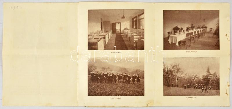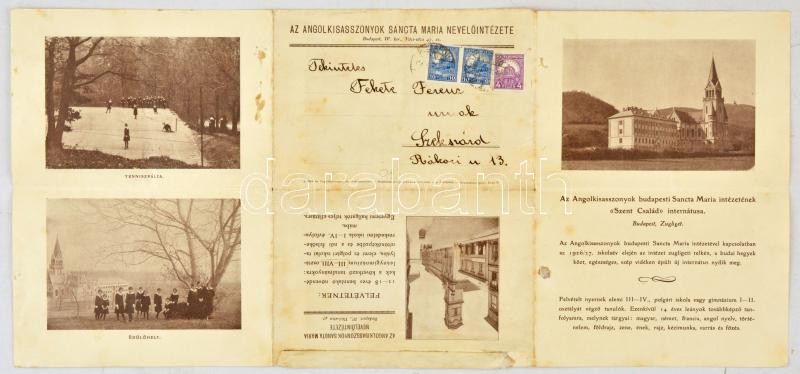Budapest V. Az Angolkisasszonyok Sancta Maria Nevelőintézete. Váci utca 47. - kihajtogatható reklám képeslap, belsők, teniszpálya, háló és ebédlő