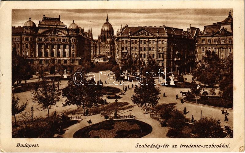 Budapest V. Szabadság tér az irredenta szobrokkal, Parlament, Országhá...