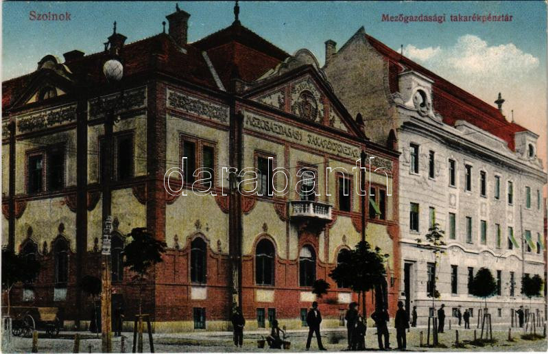 Szolnok, Mezőgazdasági takarékpénztár. Vasúti levelezőlapárusítás 34. ...
