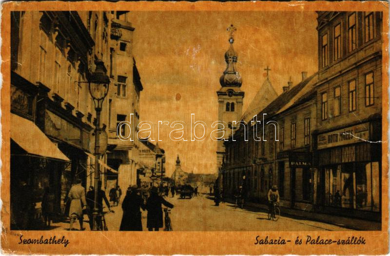 Szombathely, Sabaria és Palace szállók, Koth Mózes üzlete, utca (EK)