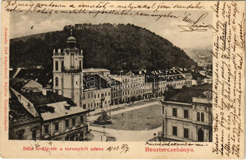 1903 Besztercebánya, Banská Bystrica; Béla király tér a toronyból nézv... https://www.darabanth.com/en/435-Online-auction/435.0/Postcards/Slovakia~2500007/1903-Besztercebanya-Banska-Bystrica-Bela-kiraly-ter-a-toronybol-nezve-Herritz-Janos-uzle~II2819438