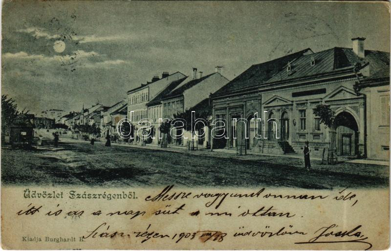 1903 Szászrégen, Reghin; Fő utca este. Burghardt R. kiadása / main street at night (EK)