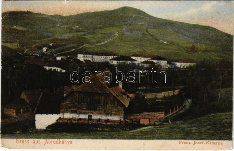 https://www.darabanth.com/en/435-Online-auction/435.0/Postcards/Transylvania~2500008/1908-Abrudbanya-Abrud-Franz-Josef-Kaserne-Ferenc-Jozsef-laktanya-KuK-military-barracks-k~II2822094