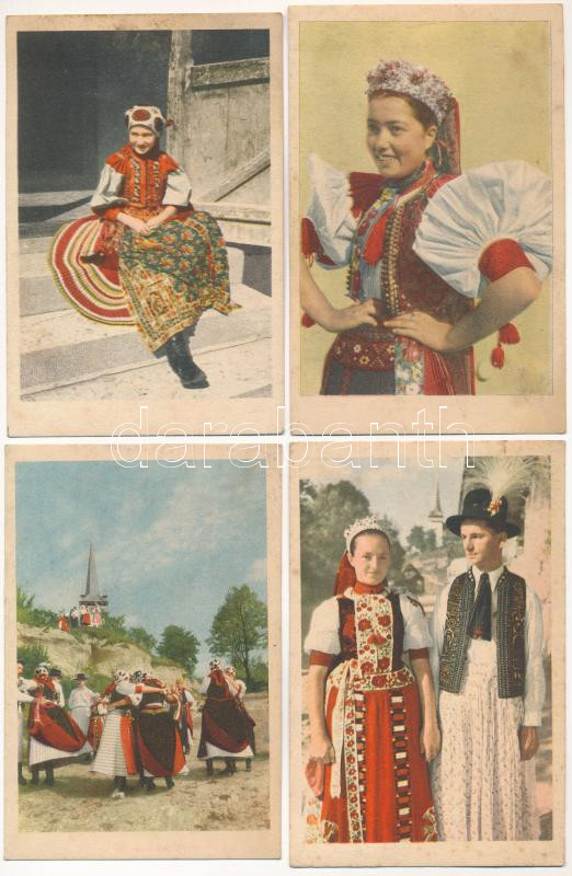 Kalotaszeg, Tara Calatei; - 4 db RÉGI erdélyi folklór képeslap / 4 pre...