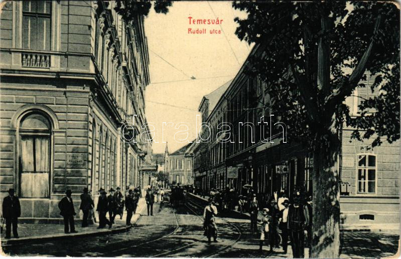 Temesvár, Timisoara; Rudolf utca, Hunyadi tér, üzletek. W.L. Bp. 2003....