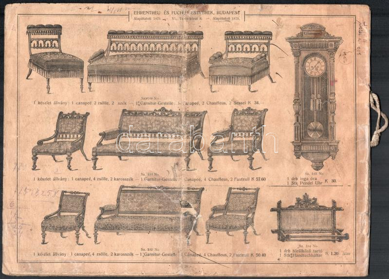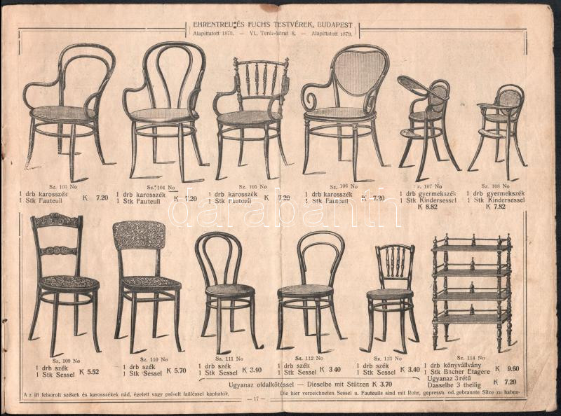 cca 1900 Gazdagon illusztrált bútorkatalógus, Ehrentreu és Fuchs Testv... https://www.darabanth.com/en/436-Online-auction/436.0/Art-and-other-collectibles/Advertisement~500022/cca-1900-Gazdagon-illusztralt-butorkatalogus-Ehrentreu-es-Fuchs-Testverek-Bp-VI-Terez-kr~II2835388