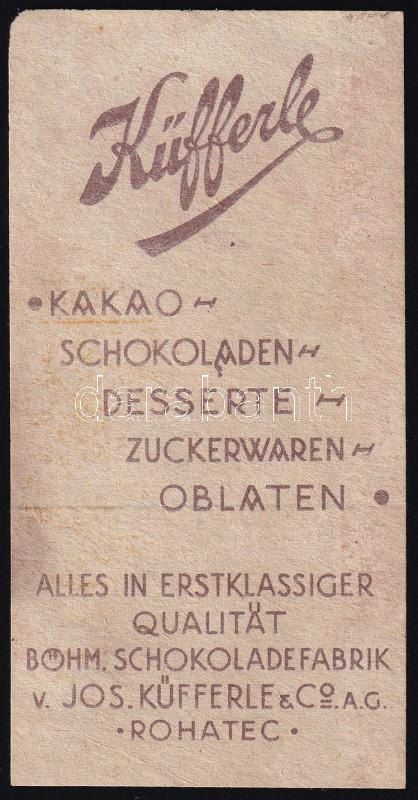 cca 1900 Küfferle Schokoladefabrik számolócédula