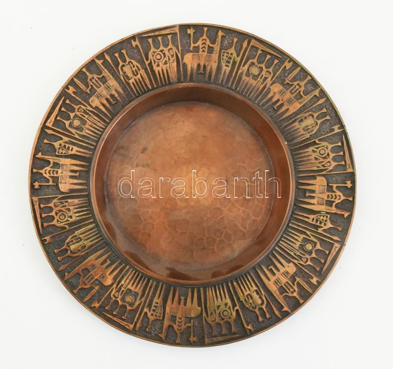 NL jelzéssel: Iparművész vörösréz tál figurális relieffel, hátoldalán ...