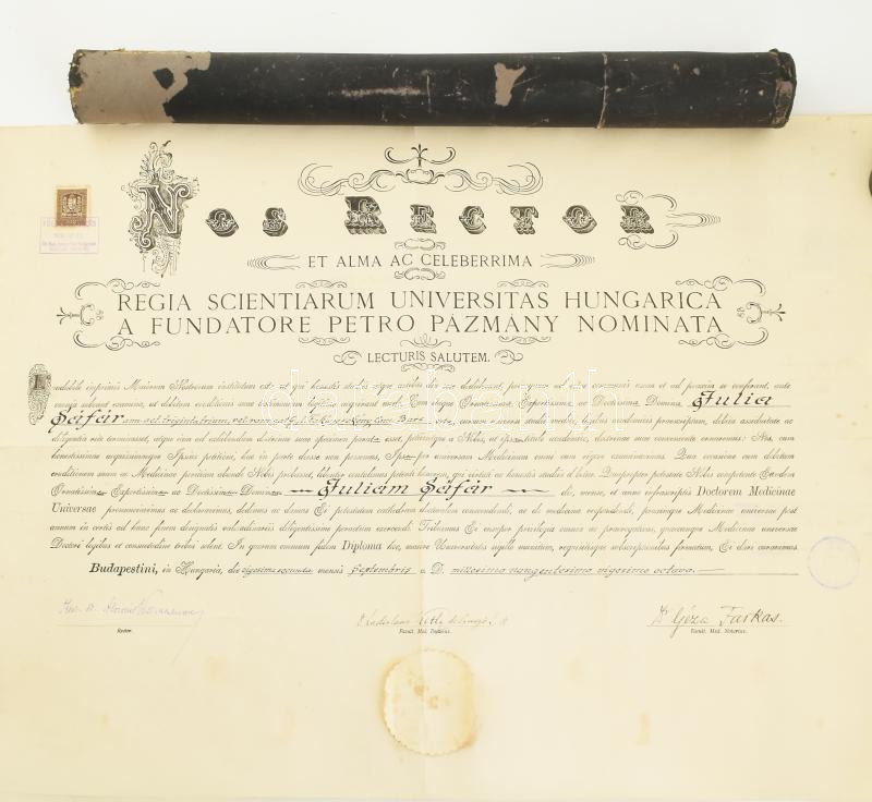 1928 A Pázmány Péter Tudományegyetem által kiadott orvosi diploma, szá...