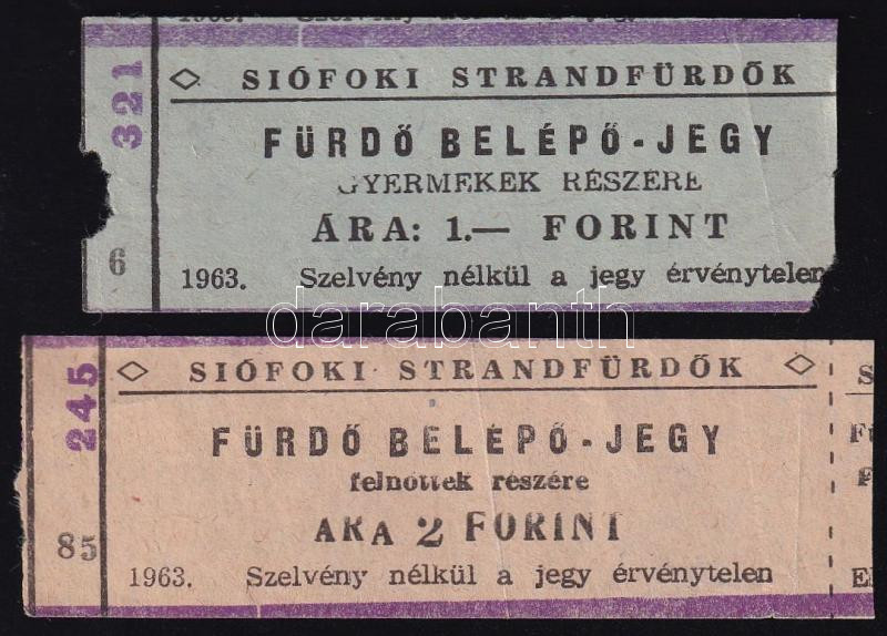1963 Siófoki strandfürdő belépőjegyek, 2 db