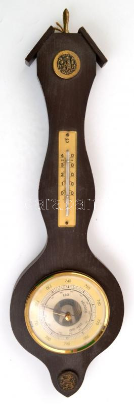 Barométer és hőmérő fa alapon, címeres díszítéssel, falra akasztható, ...
