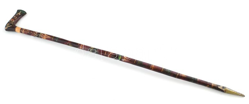 Sétabot, faragott festett fa, kopásokkal, h: 83 cm