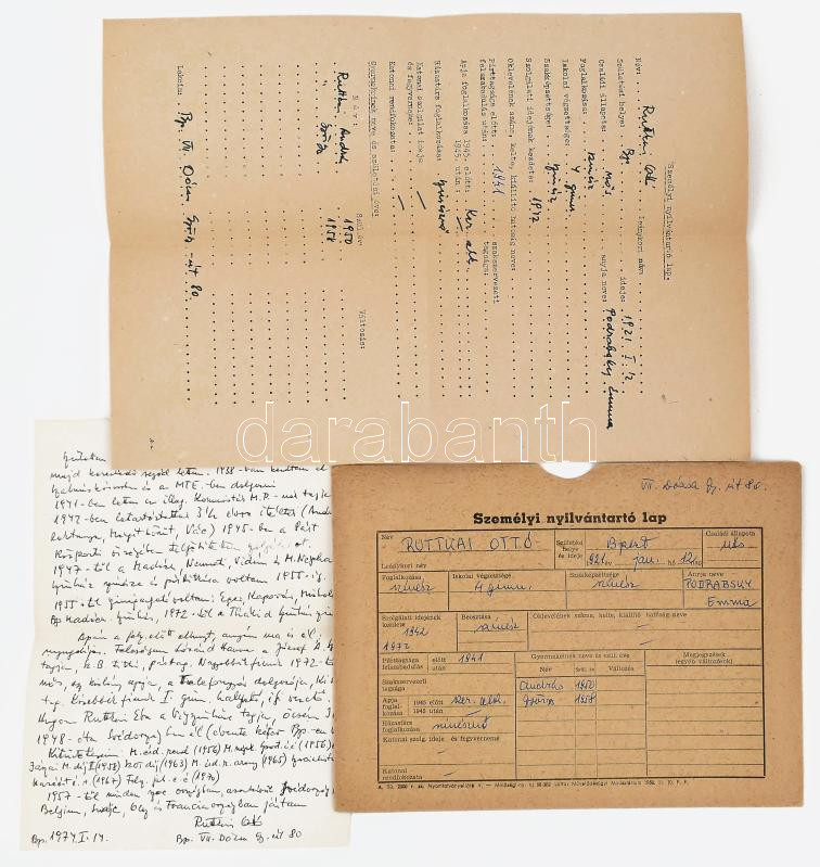 cca 1970 Ruttkai Ottó (születési nevén Russ) (1921-1988): személyi nyilvántartó lapja és kézzel írt önéletrajza