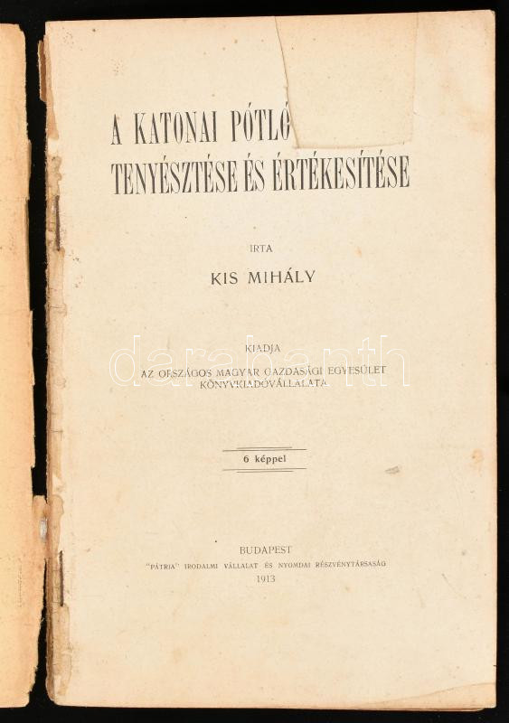 Kis Mihály: A katonai pótló (remonta) tenyésztése és értékesítése. 6 k... https://www.darabanth.com/en/436-Online-auction/436.0/Art-and-other-collectibles/Military~500029/Kis-Mihaly-A-katonai-potlo-remonta-tenyesztese-es-ertekesitese-6-keppel--Bp-1913-~II2827389